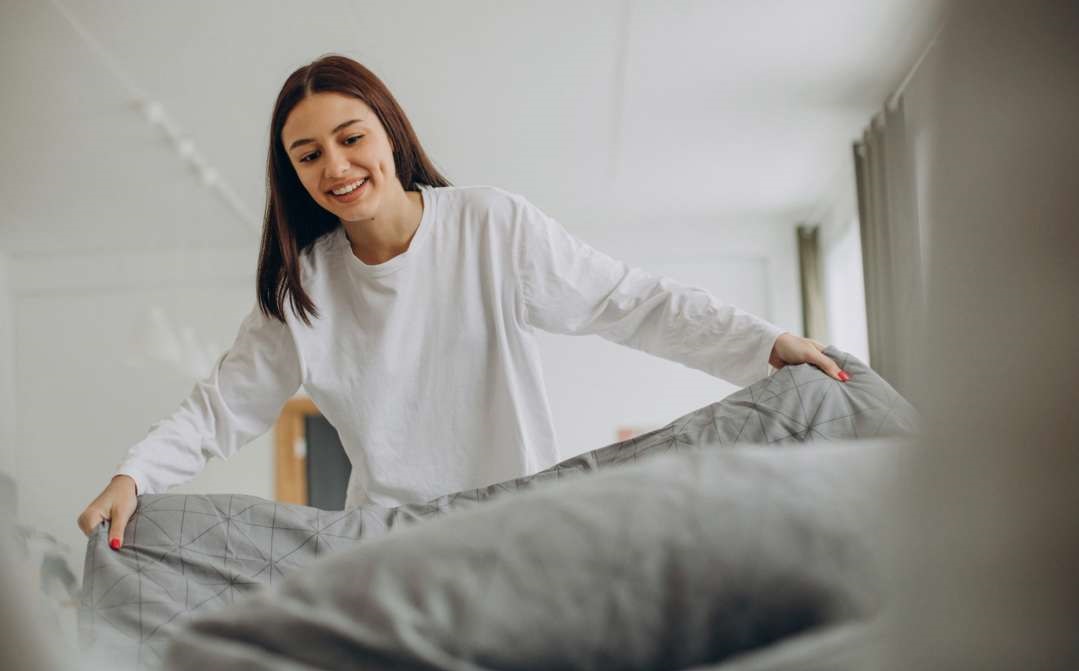После утреннего пробуждения не торопитесь сразу заправлять кровать. Дайте немного времени простыням и пододеяльнику, чтобы просохнуть.